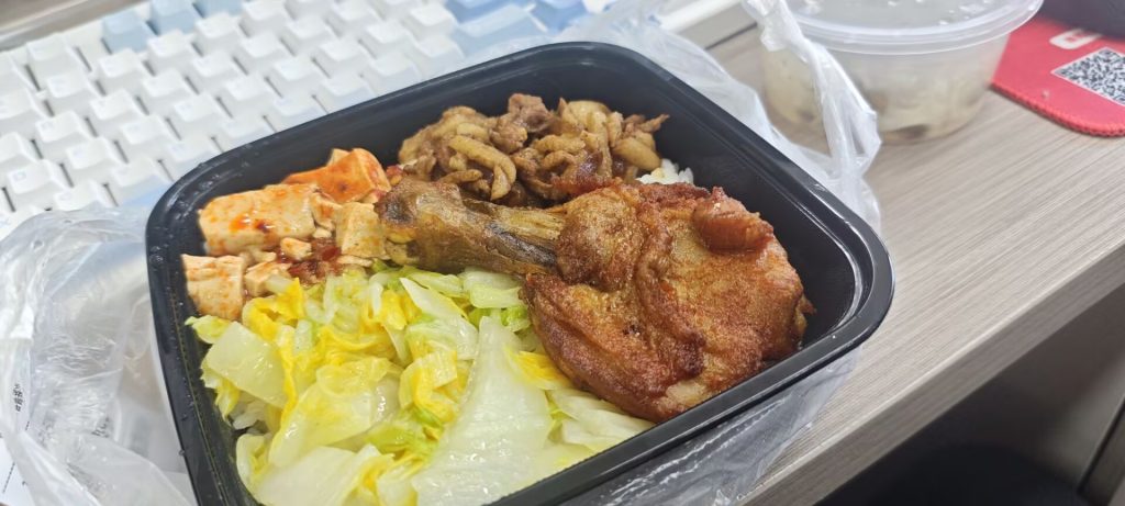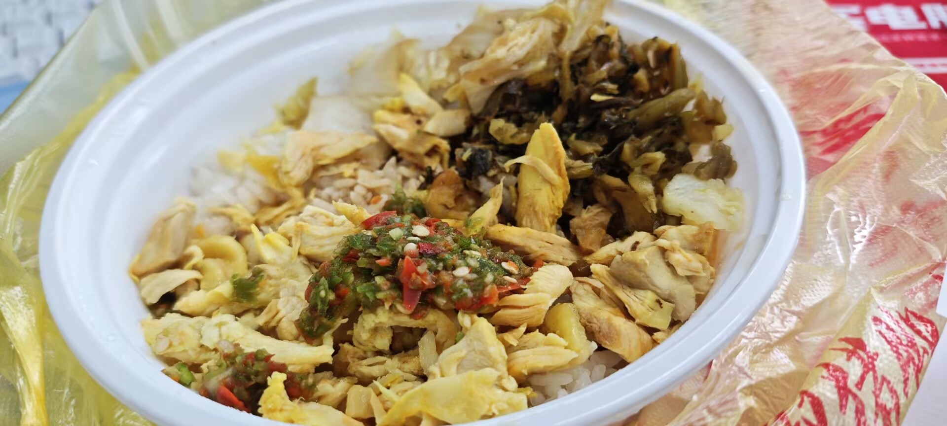 下午是超级妙的鸡腿饭!白菜做的不咋好吃(我本身也不算特别爱白菜~)其他的超级爱!味道还是很棒的,特别是榨菜味道很赞欸~(但是筷子断了一截奇奇怪怪的)