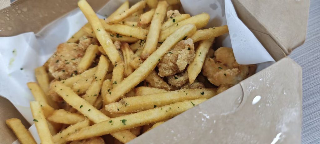 这个看着就很多拿着就很沉的我就先吃啦,一看就是能吃饱的分量怎么回事!然后吃剩下的薯条和鸡肉~还有雪碧我的妈呀,太撑了真的~味道也特别好哦!
