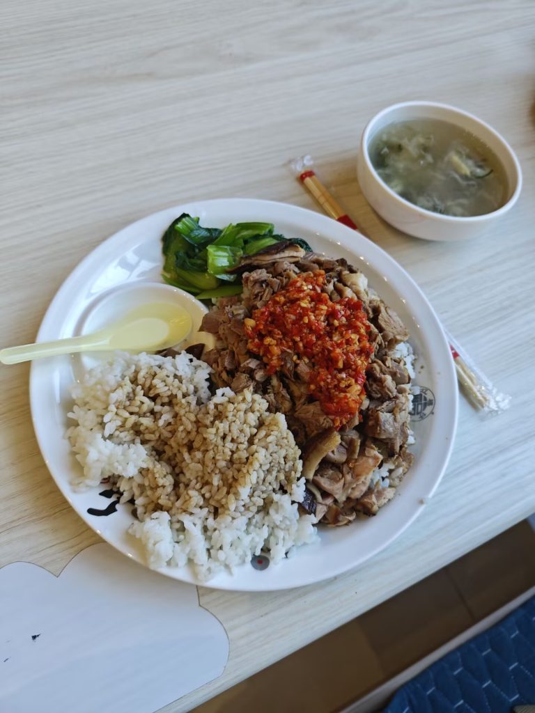 早上学习之后,给你点完外卖,要吃午饭!懒得走好远,还是去一食堂吧(考验:一食堂指代啥?)我想到了“脂肪肝”典故,所以中午我吃的纯素~豆腐盖浇饭~嘻嘻