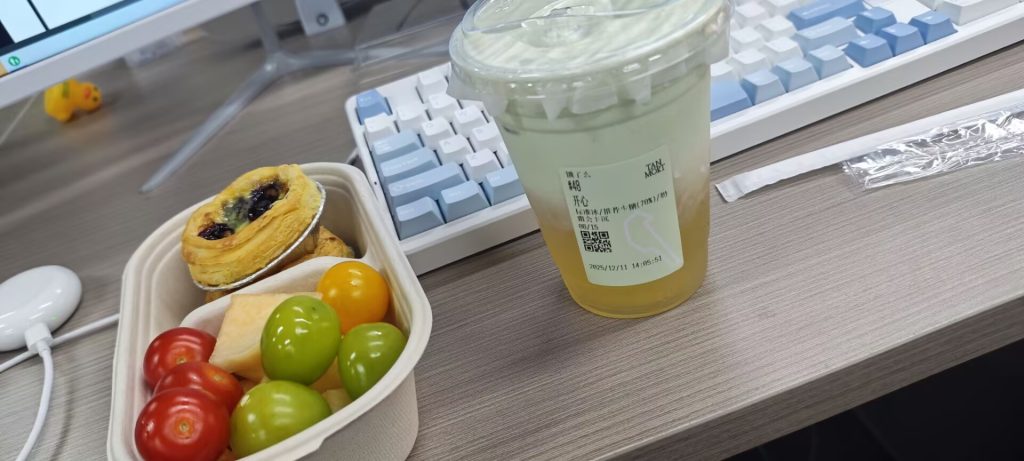 拿完奶茶回到宿舍喝了之后,开始学习。我还以为喝了之后就下午不会困了一整个下午都在学习。你这个奶茶里面是酸奶紫米露,没有奶茶的成分,所以说该困还是会困的,学着学着就感觉有点困,给你发了句消息就睡午觉了。醒来的时候发现睡了一个小时,刚刚好的时间也不算多,不算少吧,补充完体力之后刚好收拾精神听课呢!