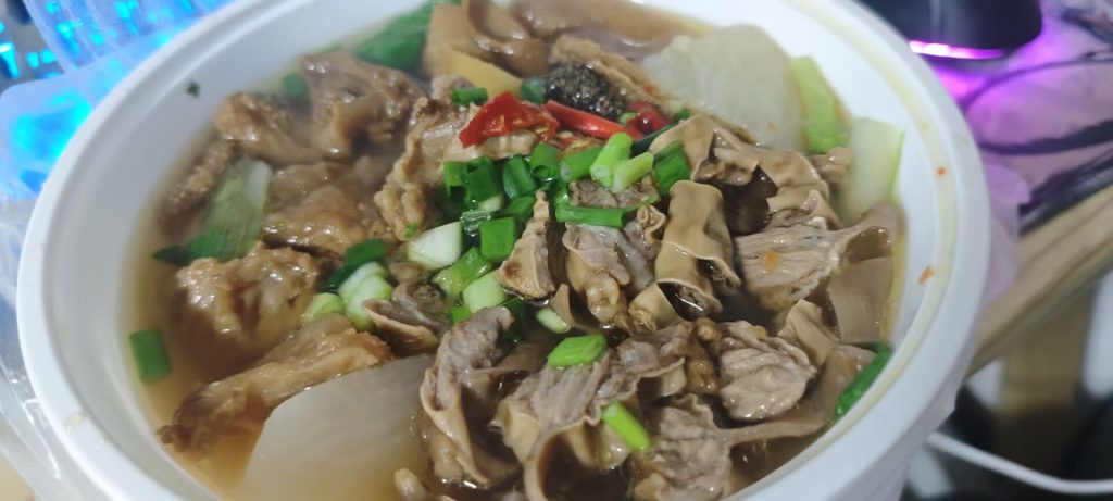 晚上呢跑去吃蛋包里脊还有羊杂粉!(羊杂粉加了半碗白色的某种粉末,看着很害怕欸!加一点调味就算了,加半碗...再也不敢吃了!但是那个里脊肉很好吃欸!)