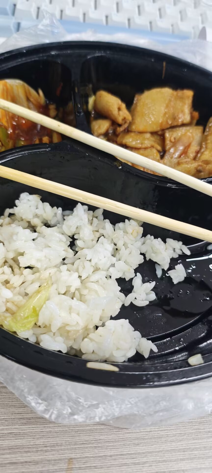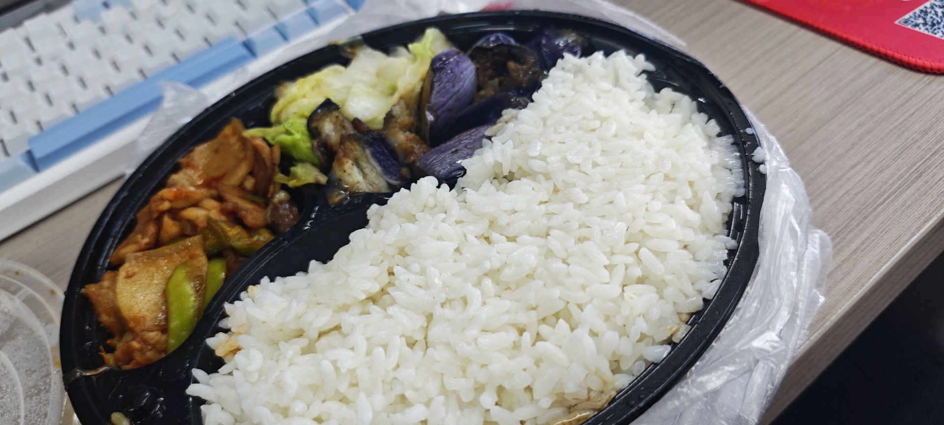 今天呢又是很大份的饭,但是讲道理,分量是很足啦,但是每次的菜都很朴素欸,非要说的话上次还能接受,毕竟肉肉还可以,菜属于是不太喜欢但是能吃的,这次就夸张了,菜菜依然是不太喜欢但是能吃的,但是肉肉全是肥肉,这算啥,整份饭只有饭能吃???